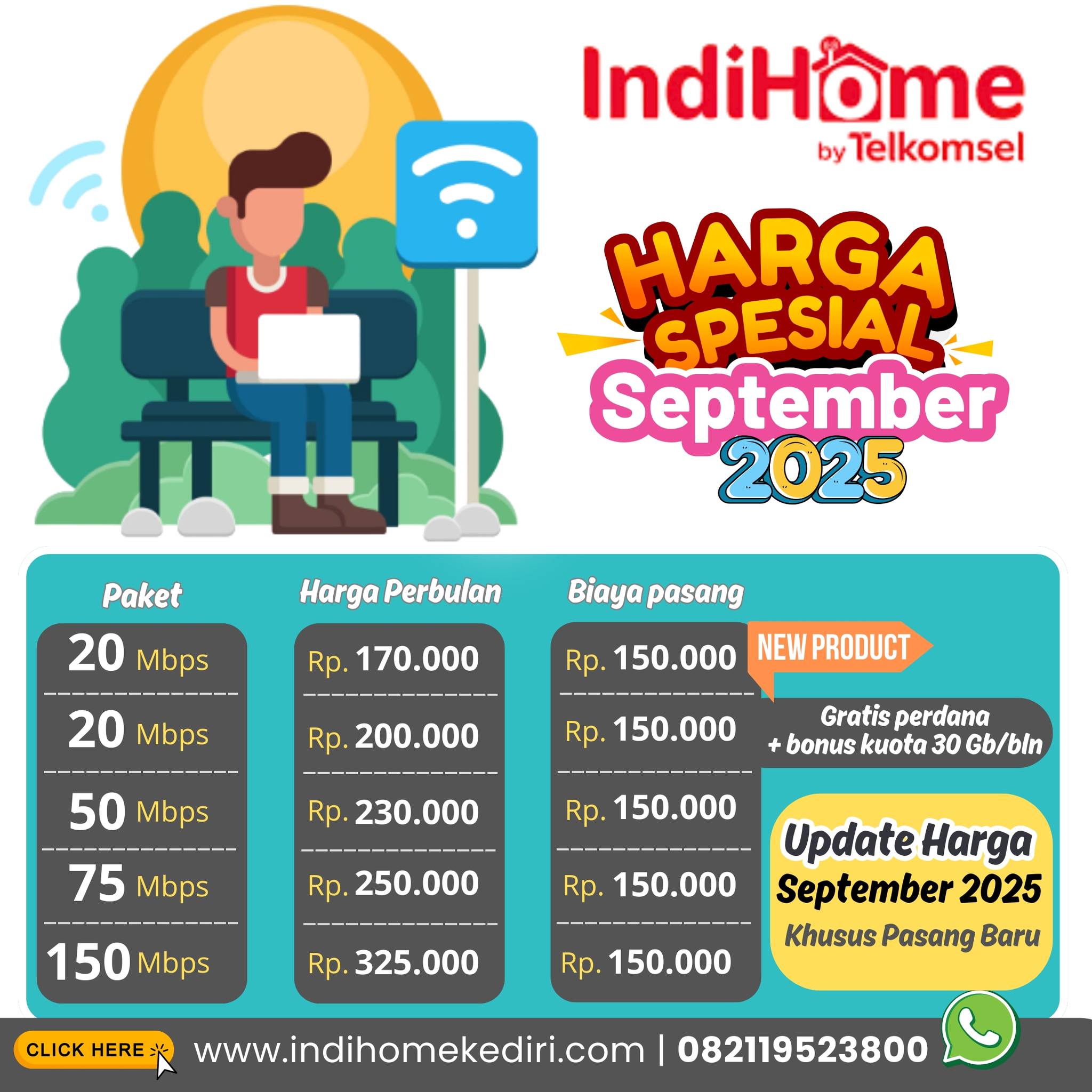 “Promo September 2025: Indihome bikin hatimu senang, dompetmu tenang! Dapatkan paket internet super cepat dengan harga menarik dan bonus kuota Telkomsel. Pasang sekarang, rasakan bedanya!”