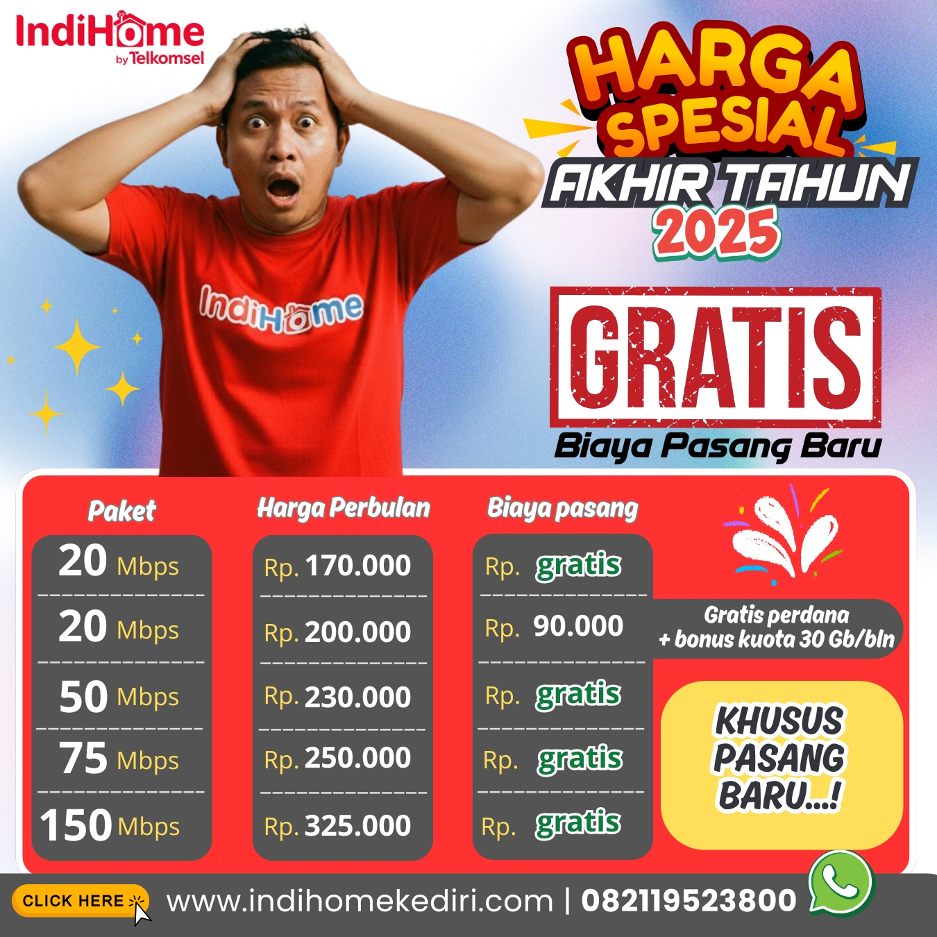 “Promo Akhir Tahun 2025: Indihome bikin hatimu senang, dompetmu tenang! Dapatkan paket internet super cepat dengan harga menarik dan bonus kuota Telkomsel. Pasang sekarang, rasakan bedanya!”